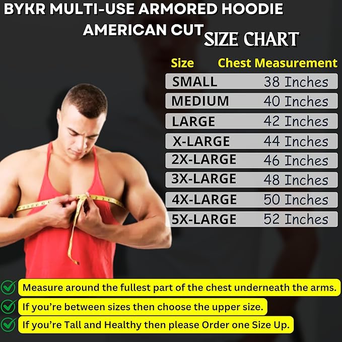 Motorcycle gear doesn't have to be stiff and uncomfortable. That's why the BYKR brand is offering a solution that pairs soft, functional materials with protection against abrasion and impact. If you want an oversized fit or to put multiple layers underneath, we recommend sizing up. Bykr armored motorcycle hoodie for men and women, designed to provide unrivaled protection and style on the road. The breathable fabric keeps you cool and comfortable, even on long journeys, while the sleek design enhances your overall look. Whether you're cruising through the city streets or embarking on a thrilling adventure, BYKR armored hoodie has got you covered. Featuring strategically placed armor inserts(removable), this hoodie offers targeted protection to key areas without compromising on flexibility or mobility. The padded design not only provides extra safety but also adds a layer of insulation for those cooler rides. Available in a range of stylish colors, bykr motorcycle hoodies are the perfect combination of fashion and function. Whether you're a seasoned rider or a beginner, this hoodie is a must-have in addition to your riding gear collection. BYKR in-house based customer service is available 24/7 to assist you in all matters with a 1 YEAR FREE REPLACEMENT WARRANTY!!! In case of any query related to BYKR motorcycle gear, please do not hesitate to contact us :) #BYKR
