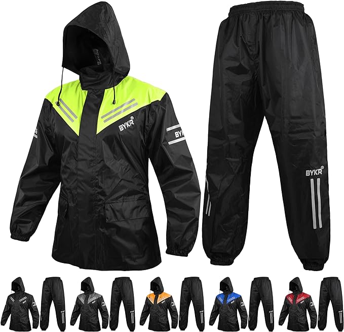 - Lightweight & Optimal Fitting: Experience versatility and functionality with the BYKR Motorcycle Rain Suit. It features adjustable cuffs for a personalized fit and a secure zipper plus Velcro closure with a fully customizable hood.